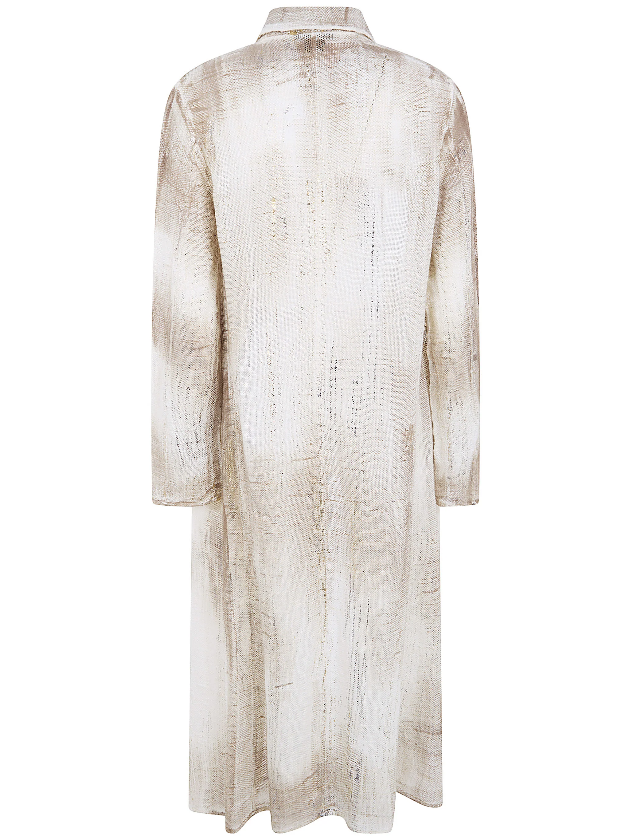 Elevate your wardrobe with this stunning brushed effect linen and cotton net fabric rever jacket from Avant Toi. Crafted from a luxurious blend of 60% linen and 40% cotton, this lightweight jacket features a sophisticated laminated finish that adds subtle dimension and visual interest.