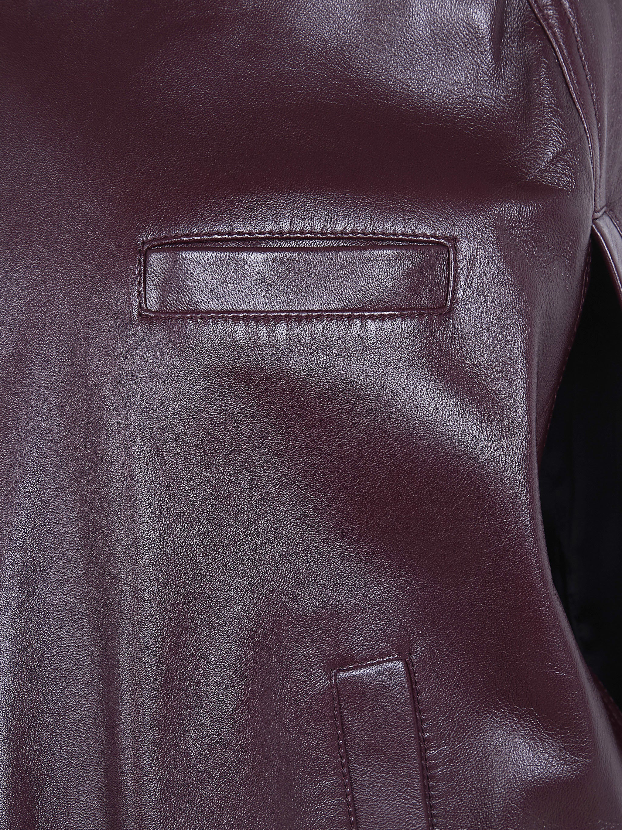 Elevate your outerwear collection with the Cape Bomber from PHOEBE PHILO. Crafted from luxurious 100% calf leather in a rich burgundy hue, this sophisticated bomber jacket features a sleek zip-front closure, ribbed collar, cuffs, and hem for a classic silhouette.