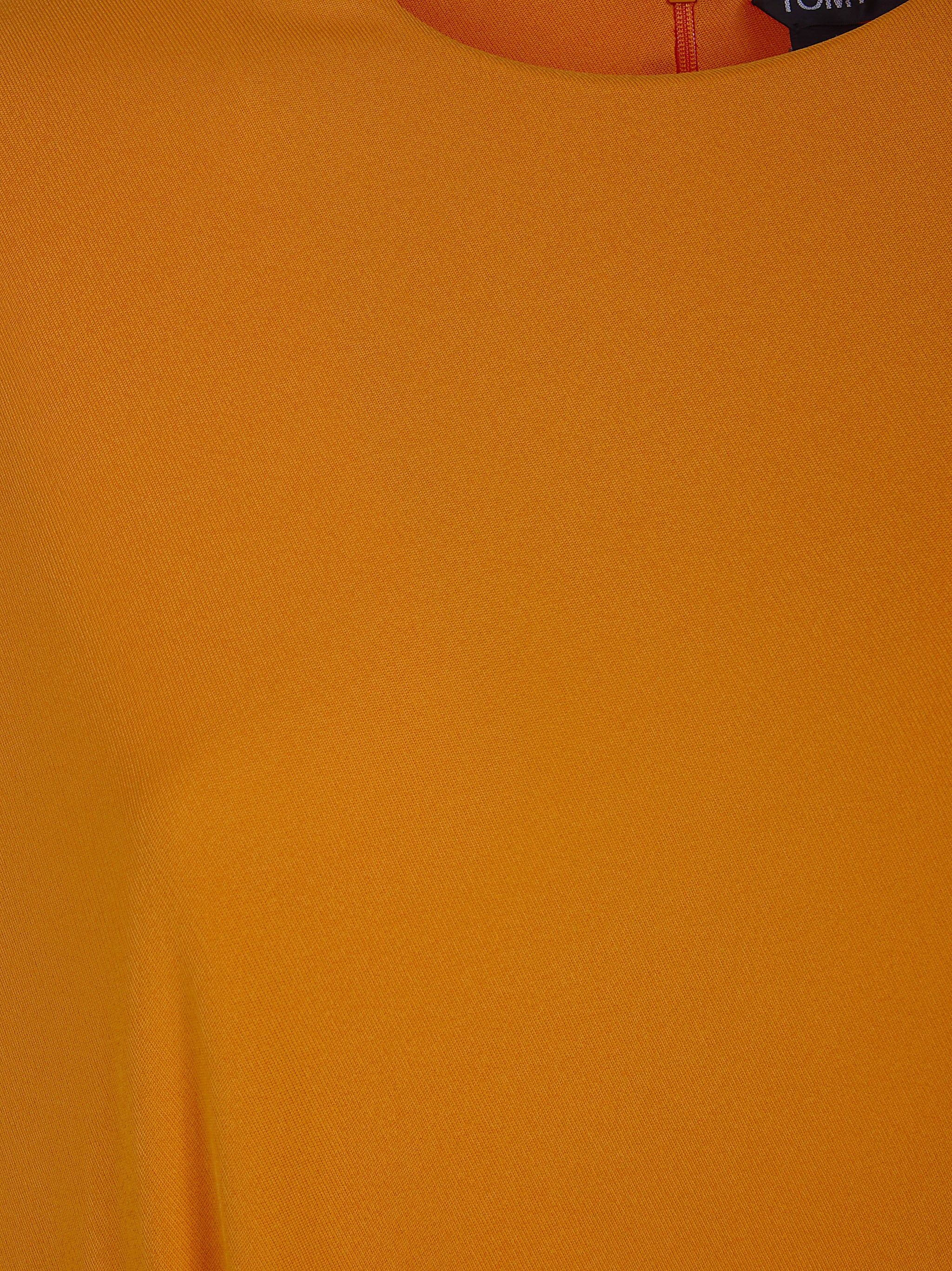 Make a bold statement with the Tom Ford Crepe Jersey "Impossible" Asymmetric Top in a stunning golden hue. This luxurious piece features a dramatic asymmetric drape that creates an architectural silhouette, perfect for the fashion-forward woman who appreciates avant-garde design.