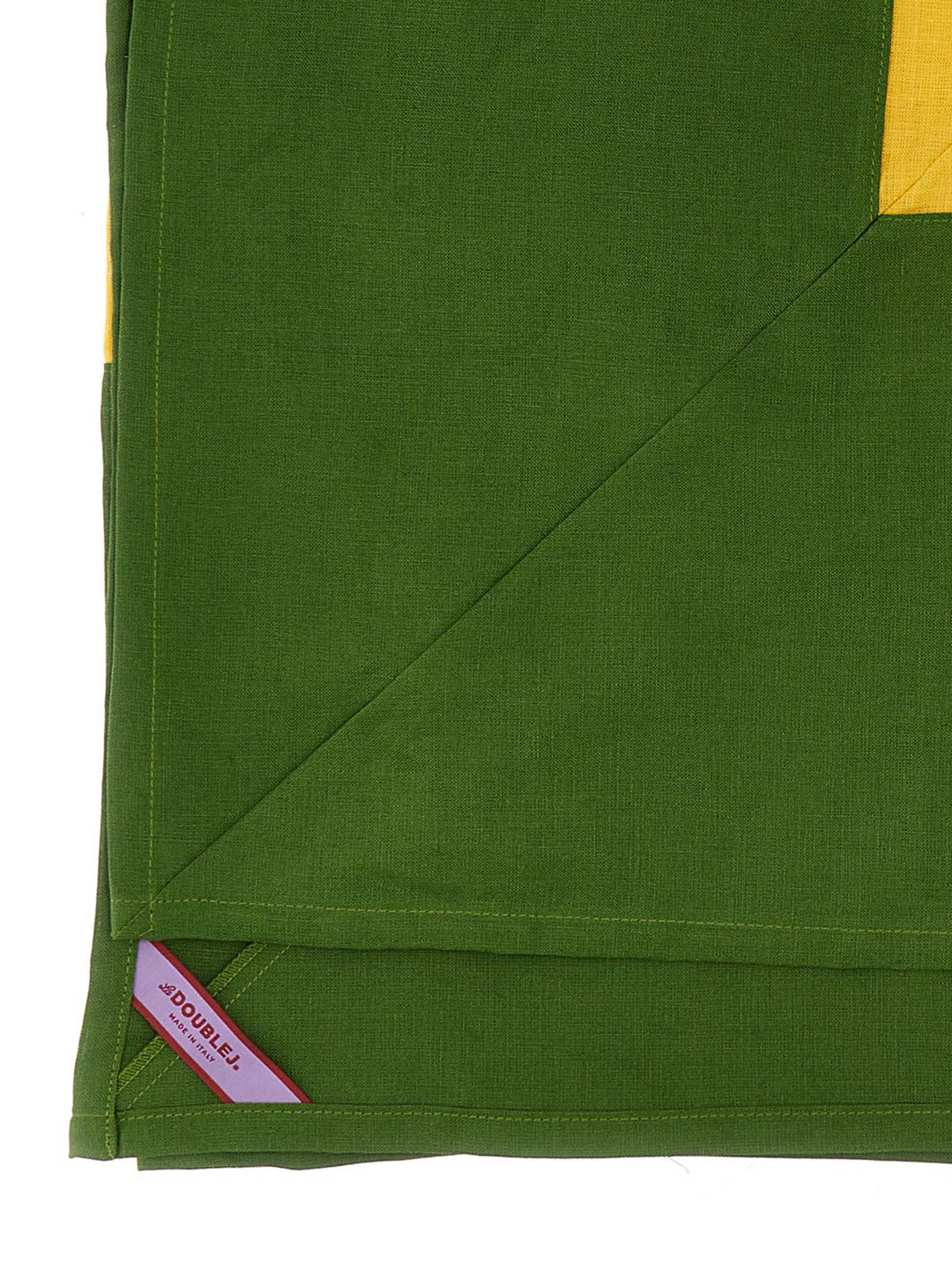 Elevate your dining experience with La Double J's 'Rainbow Sky' tablecloth, a stunning linen piece that brings vibrant colorblock design to your table. Crafted from premium linen, this tablecloth features a bold combination of rich green, sunny yellow, and soft sky blue hues that create a joyful, sophisticated aesthetic.
