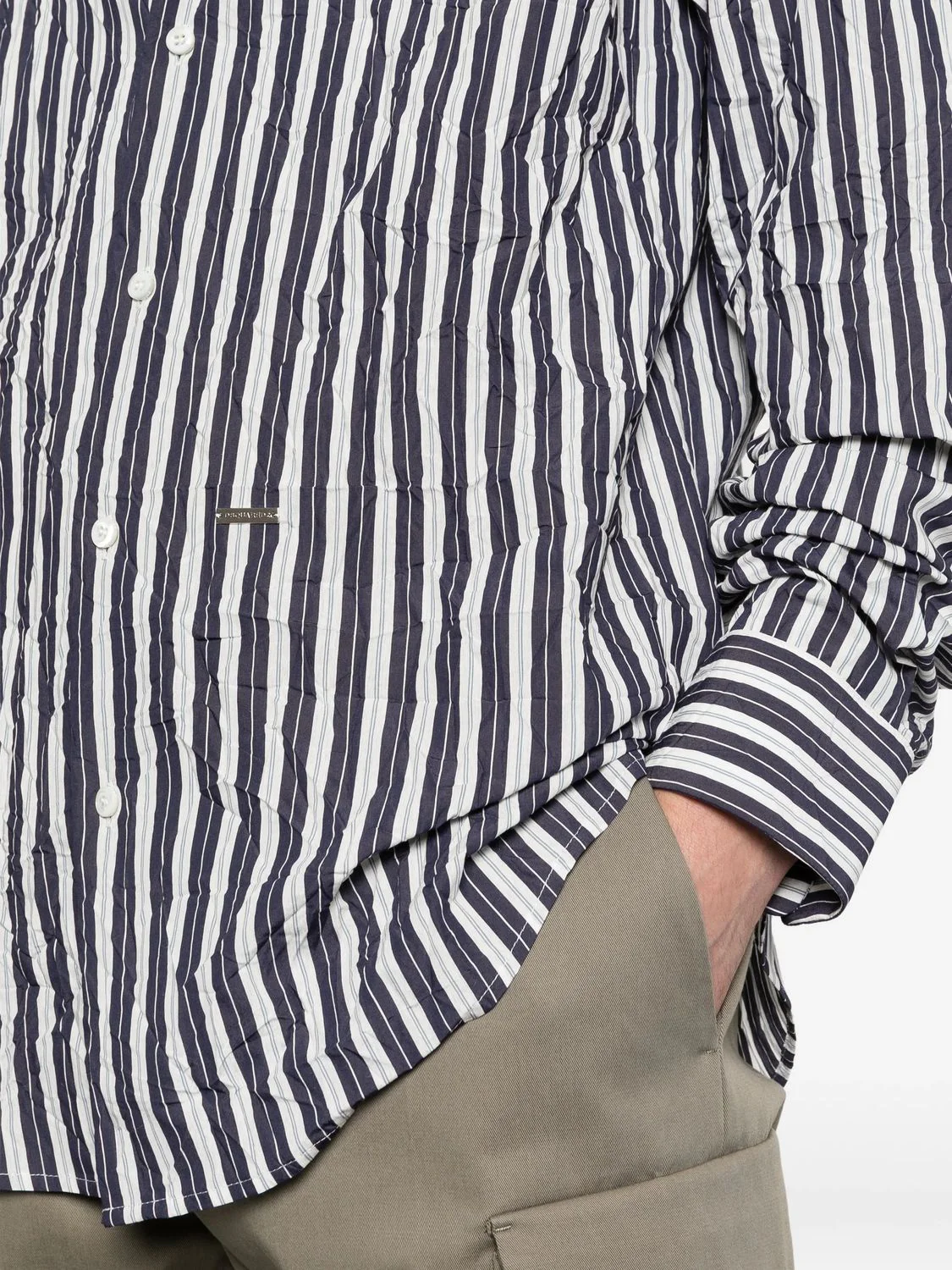 Elevate your wardrobe with this sophisticated striped button-up shirt from DSQUARED2. Featuring classic vertical stripes in a refined navy and white palette, this long-sleeve shirt combines timeless style with contemporary versatility.