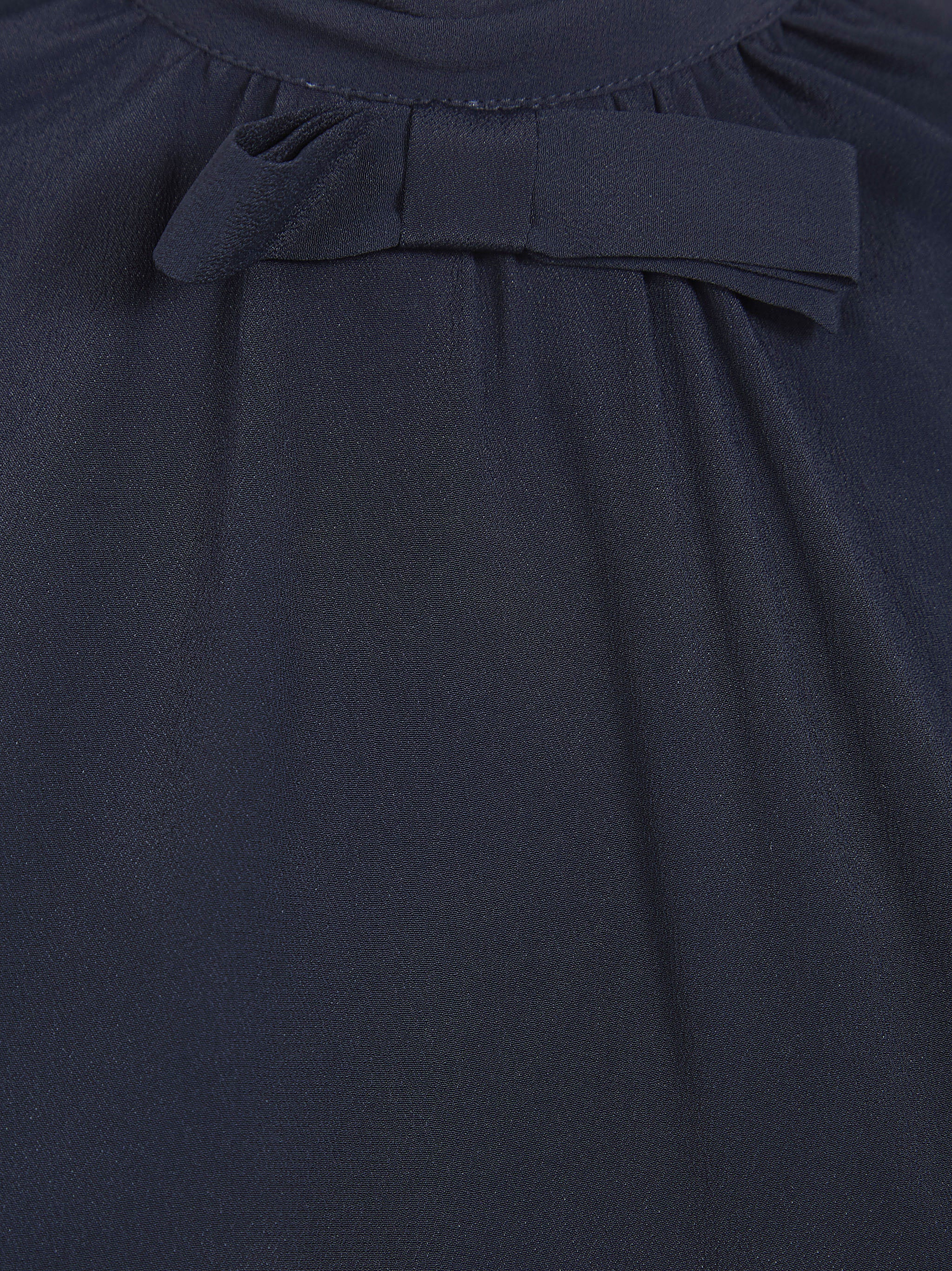 The rich navy hue and refined silhouette make this blouse perfect for the office, styled with tailored trousers and pumps, or dressed up for evening occasions with a sleek pencil skirt. The smooth, lustrous fabric drapes beautifully while maintaining structure throughout the day.